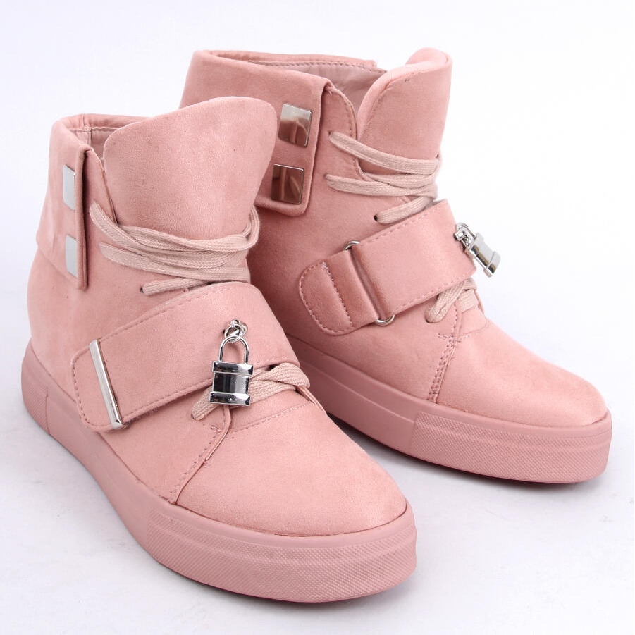 Os tênis originais Basinger Pink são uma proposta para mulheres que desejam combinar o conforto esportivo com um sotaque elegante e brilhante. A sola de borracha alta esconde um salto escondido com uma altura de 4,5 cm, que alonga opticamente as pernas, sem desistir da conveniência do uso diário. Inserções metálicas e cadarços cintilantes dão aos sapatos um personagem único, e jatos sutis enfatizam a aparência elegante.