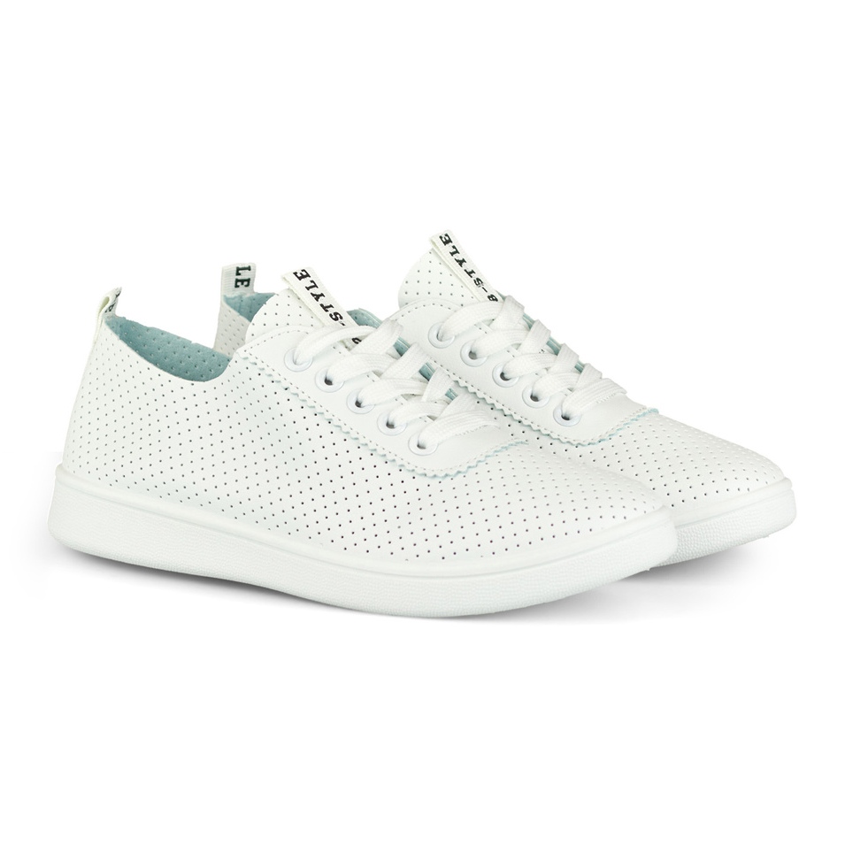 Os tênis são confeccionados em couro ecológico de alta qualidade, o que os torna ecologicamente corretos e ao mesmo tempo duráveis e fáceis de cuidar. O salto plano garante estabilidade e conforto mesmo durante o uso durante todo o dia. Graças à utilização de palmilha têxtil, o calçado é agradável aos pés e o seu carácter vazado garante uma ventilação adequada.