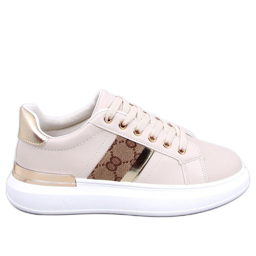 Os tênis femininos Hinds em tom bege são a escolha perfeita para mulheres que desejam aliar conforto e estilo fashion. Estes glamorosos calçados esportivos chamam a atenção pelo seu design elegante, enriquecido com diversos acessórios dourados que lhes conferem um caráter único.