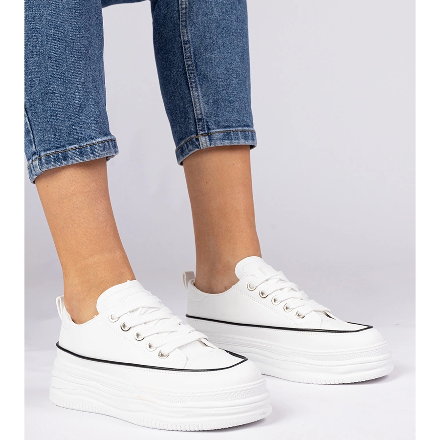 Os tênis de mulheres brancas em uma sola alta são a escolha perfeita para mulheres que desejam combinar conforto com o estilo moderno. Esses sapatos de tendências são distinguidos por um design minimalista, mas também elegante, o que os torna perfeitamente adequados em várias estilizações - desde roupas cotidianas e casuais a combinações mais elegantes.