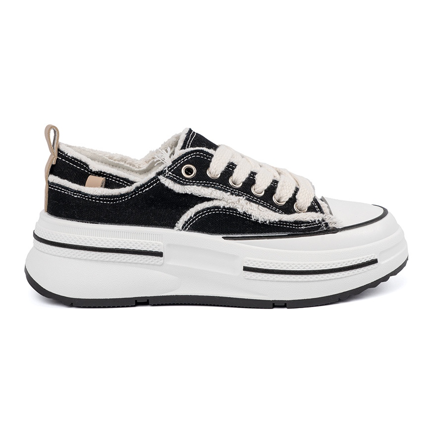 Os tênis têm uma plataforma de 4 cm de altura, o que adiciona alguns centímetros de altura, sem desistir de conforto. Uma sola de piso feita de plástico fornece boa adesão em várias superfícies, o que as torna a escolha perfeita para qualquer clima.