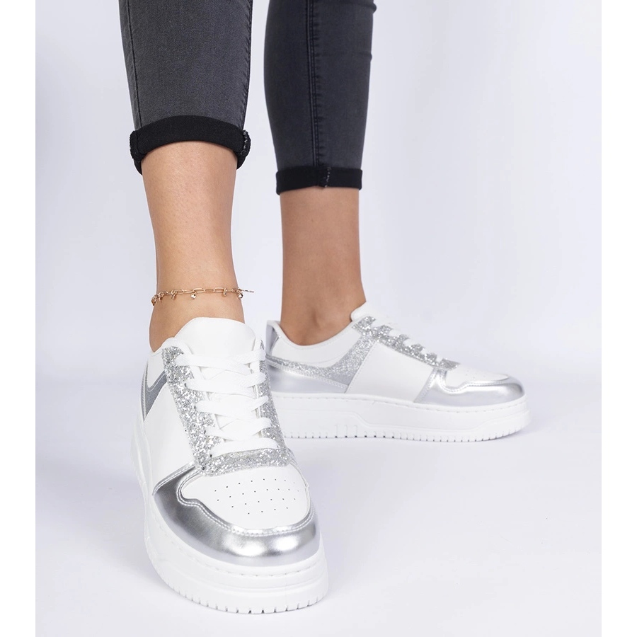 Os tênis de prata em uma sola grossa são uma ótima opção para mulheres conscientes de mulheres que desejam combinar conforto com o estilo elegante. O modelo A88-188 chama a atenção com seu design moderno e um acabamento metálico espetacular. Feito de couro ecológico de alta qualidade, esses tênis combinam durabilidade com uma aparência elegante.