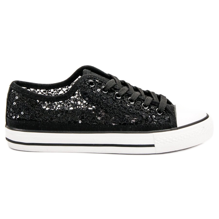 Apresentamos os tênis femininos de renda da SHELOVET na elegante cor preta, que são a combinação perfeita de estilo e conforto. Esses sapatos da moda não só chamam a atenção pelo seu padrão vazado com rendas e lantejoulas sutis, mas também garantem conforto no uso diário.