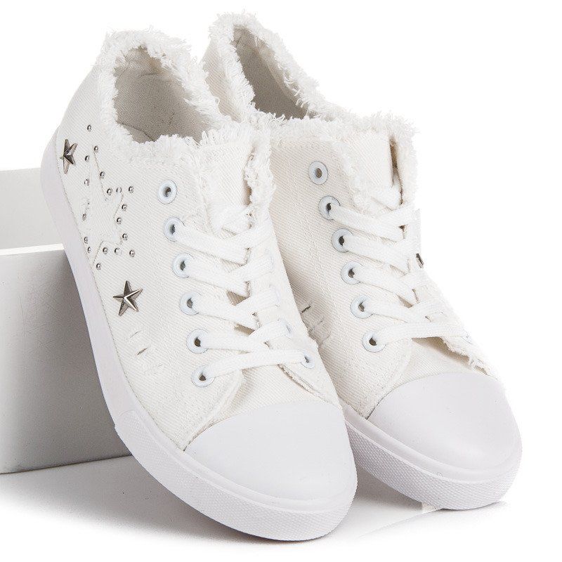 Descubra a elegância sutil nos tênis de tecido branco que serão o complemento perfeito para qualquer estilo. Estes sapatos únicos caracterizam-se por um tom nevado e um acabamento único no tornozelo, o que lhes confere um charme feminino. As decorações em forma de delicados pontos e estrelas fazem com que os tênis se destaquem, mantendo um estilo minimalista.