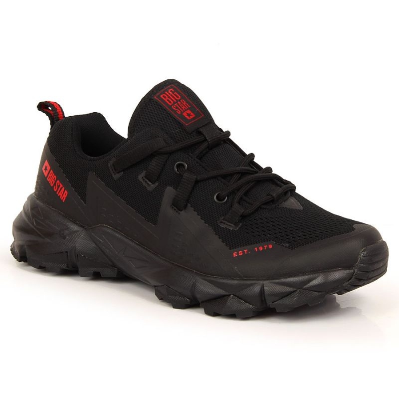 Sapatos de trekking sólidos, confortáveis e universais para homens que funcionarão durante a caminhada nas montanhas e todos os dias. O modelo Big Star KK174109 combina uma construção durável com um estilo preto simples e atemporal.