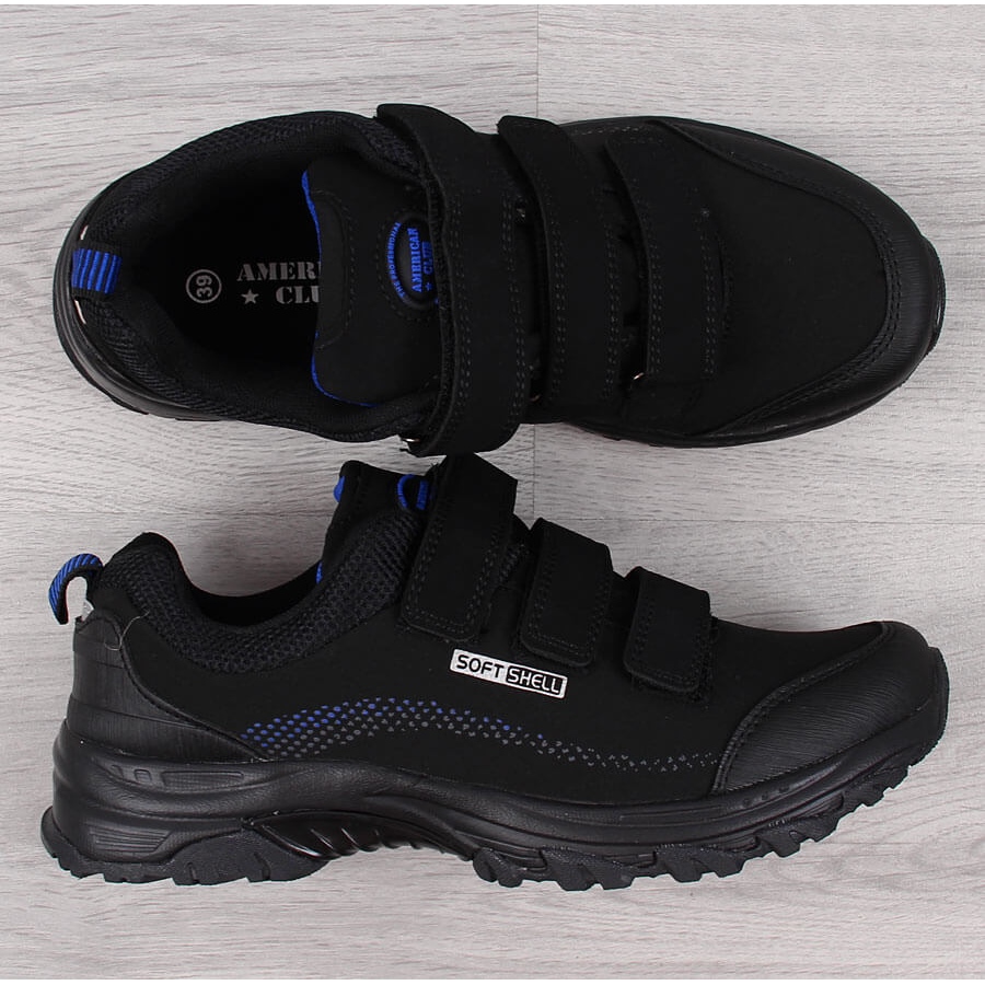 American Club Tênis de trekking com velcro impermeável preto e azul American Club