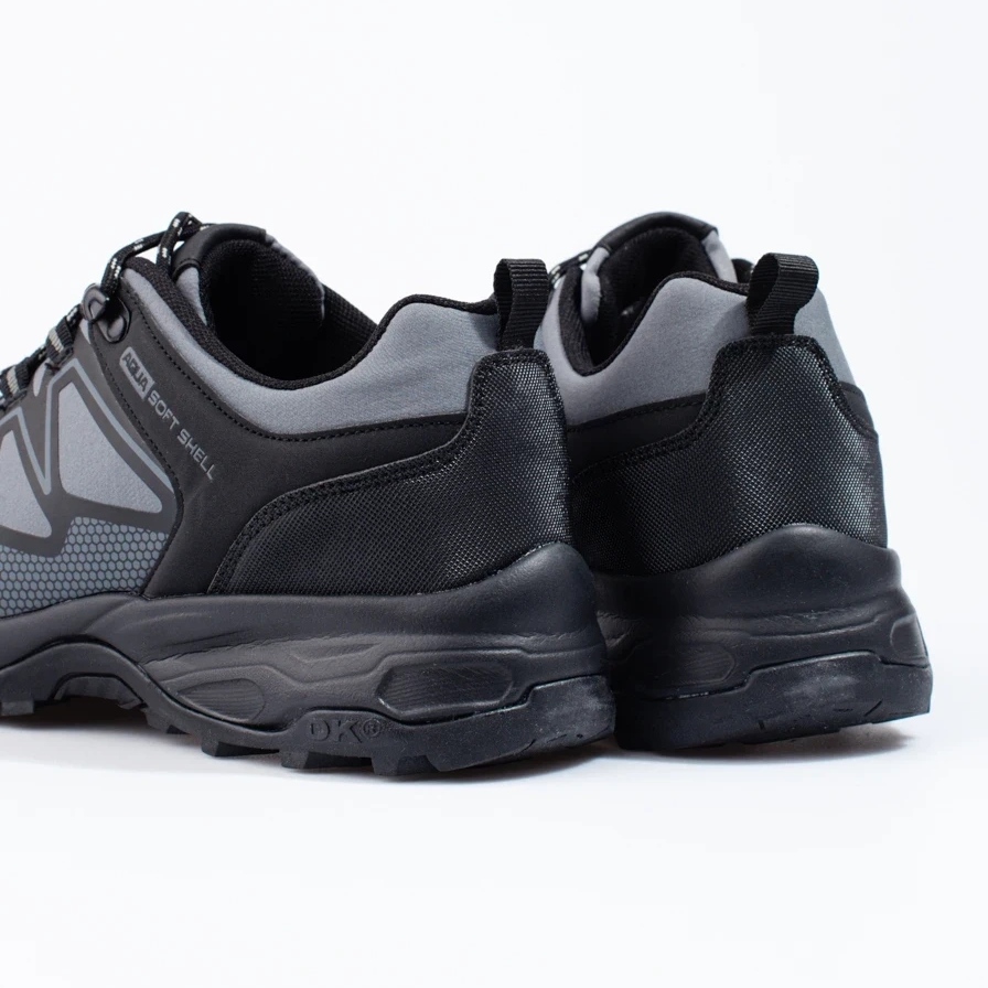O corte clássico e esportivo em tons de obra preto e cinza e sólida tornam os sapatos DK Trekking uma ótima opção para viagens de primavera e atividade ao ar livre. A combinação de materiais têxteis e ecológicos do couro, um salto macio e construído e uma sola de piso garante conforto, estabilidade e boa adesão nos caminhos.
