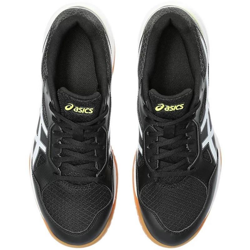 Os práticos e elegantes sapatos Asics na cor preta dominante, com detalhes em branco, são a combinação perfeita de funcionalidade e design moderno. O fecho com cadarço permite que o calçado seja ajustado com precisão ao formato individual do pé. A sola de borracha foi desenhada para proporcionar uma elevada aderência, o que é extremamente importante em superfícies interiores, e tem a propriedade de não manchar o pavimento em parquet.