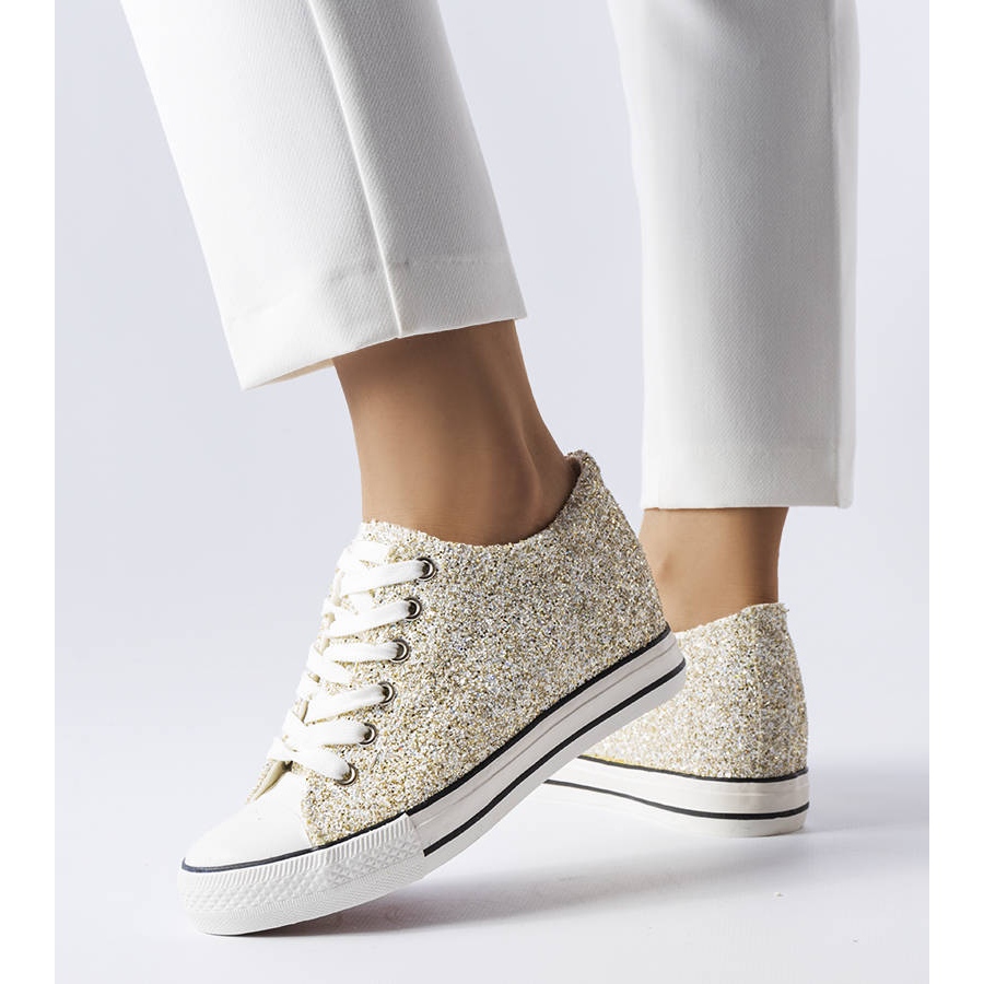 Os tênis Gold Garceau de salto baixo são obrigatórios para toda mulher fashion. A sua elegante cor dourada combinada com a sola bege tornam-nos na escolha perfeita para muitas ocasiões, desde reuniões casuais até ocasiões mais elegantes. O modelo B217 distingue-se por um design simples mas eficaz que se adapta perfeitamente às tendências atuais.