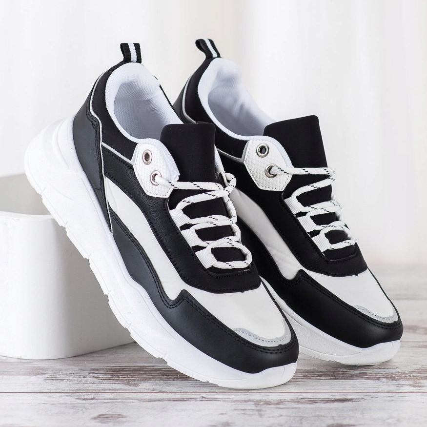 Detalhes: SHELOVET Tênis elegantes atados branco preto