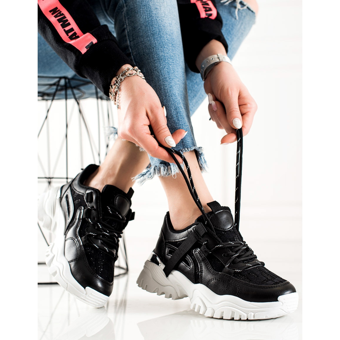 Apresentamos os tênis da moda com glitter do fabricante TRENDI - a escolha perfeita para mulheres que desejam aliar conforto ao estilo brilhante. Este calçado desportivo preto foi criado a pensar no uso quotidiano, tornando-o perfeito para qualquer situação, tanto nos passeios pela cidade como nos encontros de fim-de-semana com amigos.