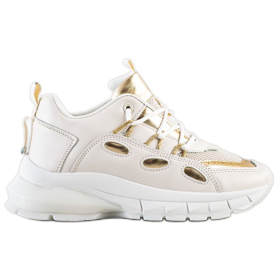 SHELOVET SHELOVET Tênis elegantes de couro ecológico bege dourado