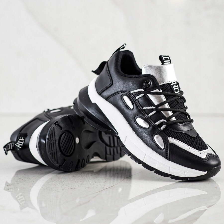 SHELOVET SHELOVET Tênis elegantes de couro ecológico preto prata