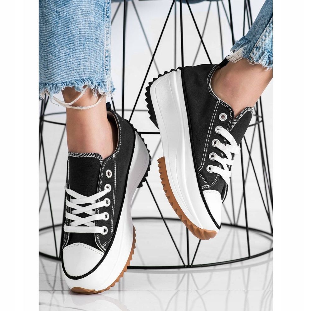 Descubra os últimos tênis de plataforma alta da marca SHELOVET, que se tornarão um elemento indispensável do seu guarda-roupa primavera-verão. Estes calçados esportivos pretos combinam conforto e um visual moderno, combinando perfeitamente com as tendências atuais.