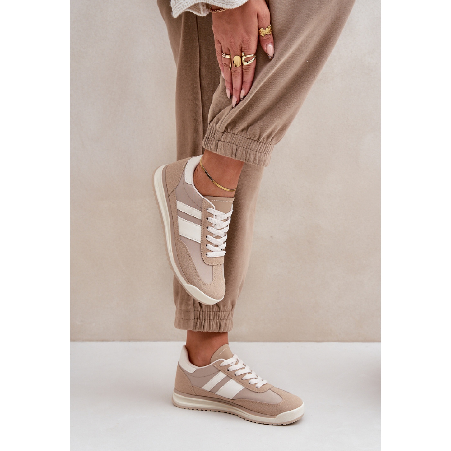 Descubra o modelo mais recente de tênis esportivos empatou 8957 em uma cor bege, que se encaixa perfeitamente na tendência das estilizações casuais cotidianas. Esses tênis baixos, feitos de couro ecológico de alta qualidade, são a escolha perfeita para todos os fãs de conforto e estilo.