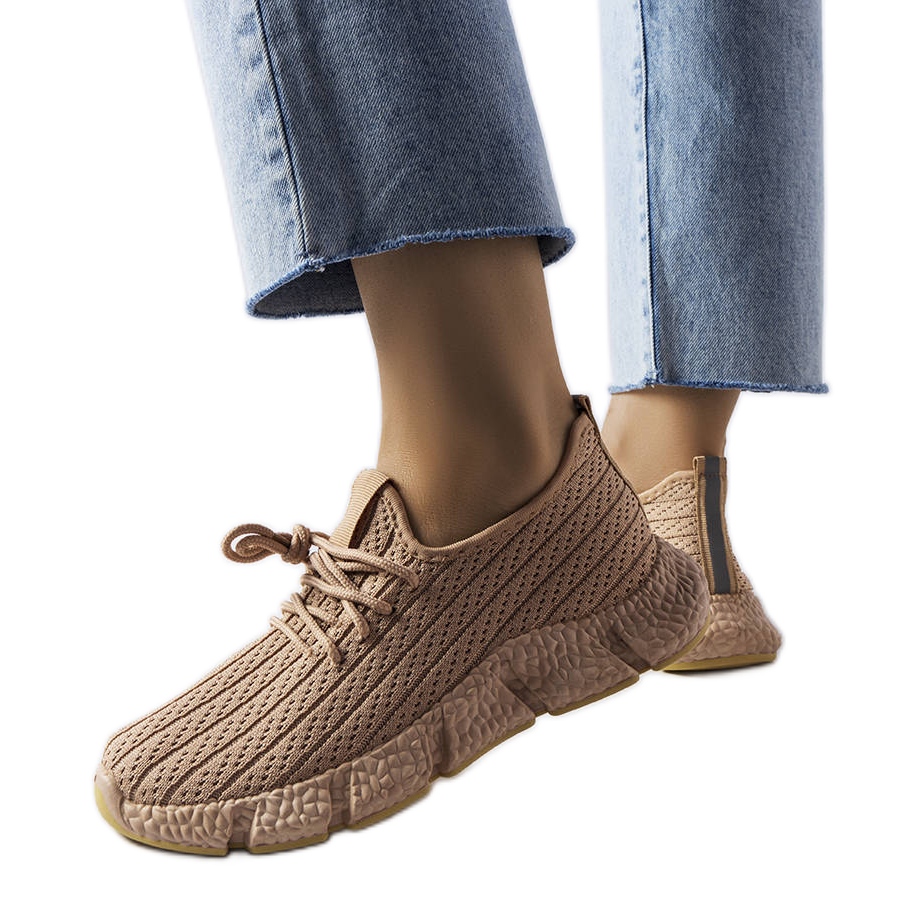 Sneakers modernos e leves Outros élodies em um tom universal de bege são uma proposta para mulheres que valorizam o conforto e o estilo. O modelo de meia feito de tecidos flexíveis adaptados ao pé, e o laço permite que você ajuste adicionalmente a correspondência. A sola de borracha amarela adiciona um sotaque original e fornece boa adesão.