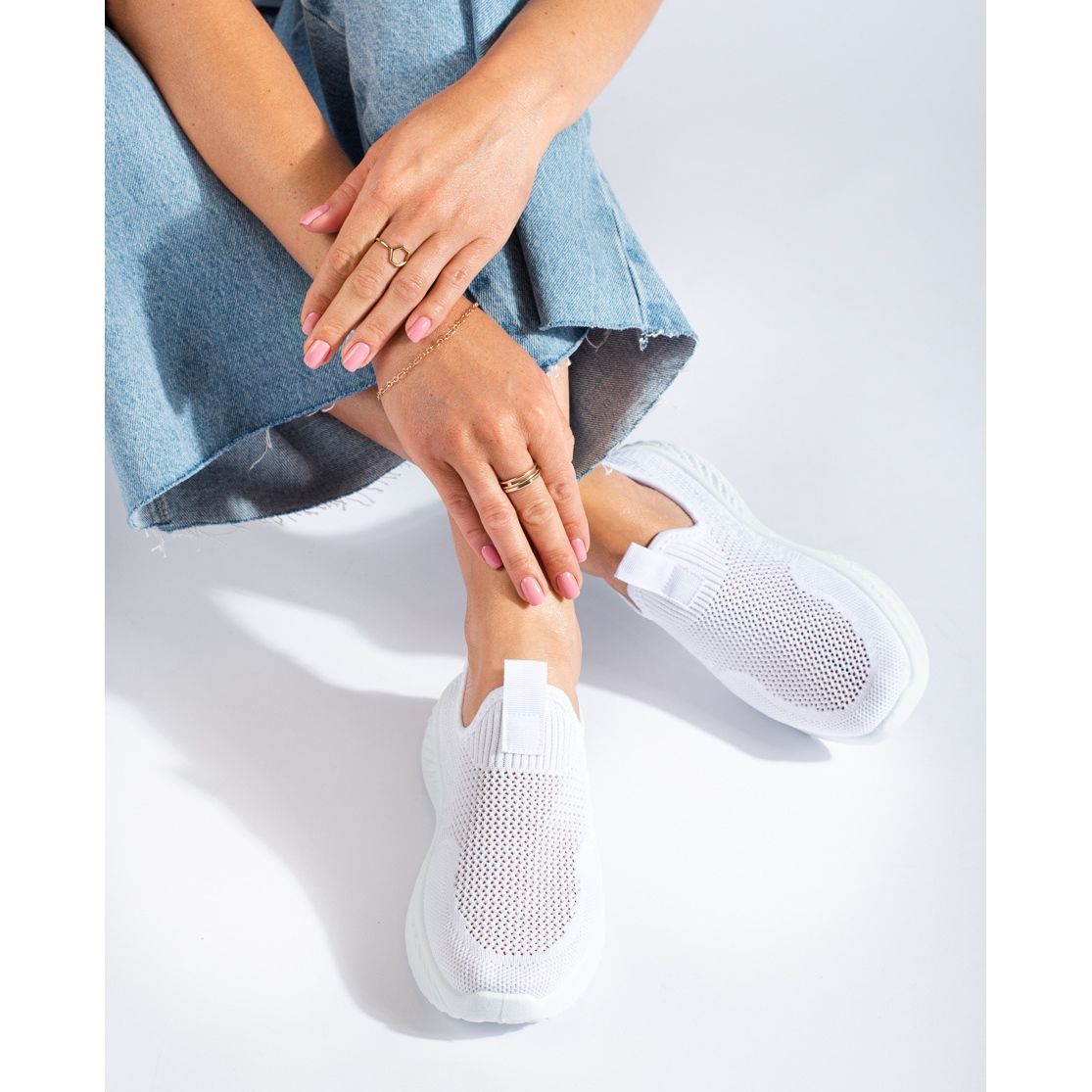 Graças à sola plana com banda de rodagem, as dimensões da plataforma são de 2 a 3 cm, o que torna o calçado perfeito para o uso diário, sem peso desnecessário nos pés. A cor branca torna-os universais e podem ser facilmente combinados com vários estilos, desde desportivos até mais casuais.