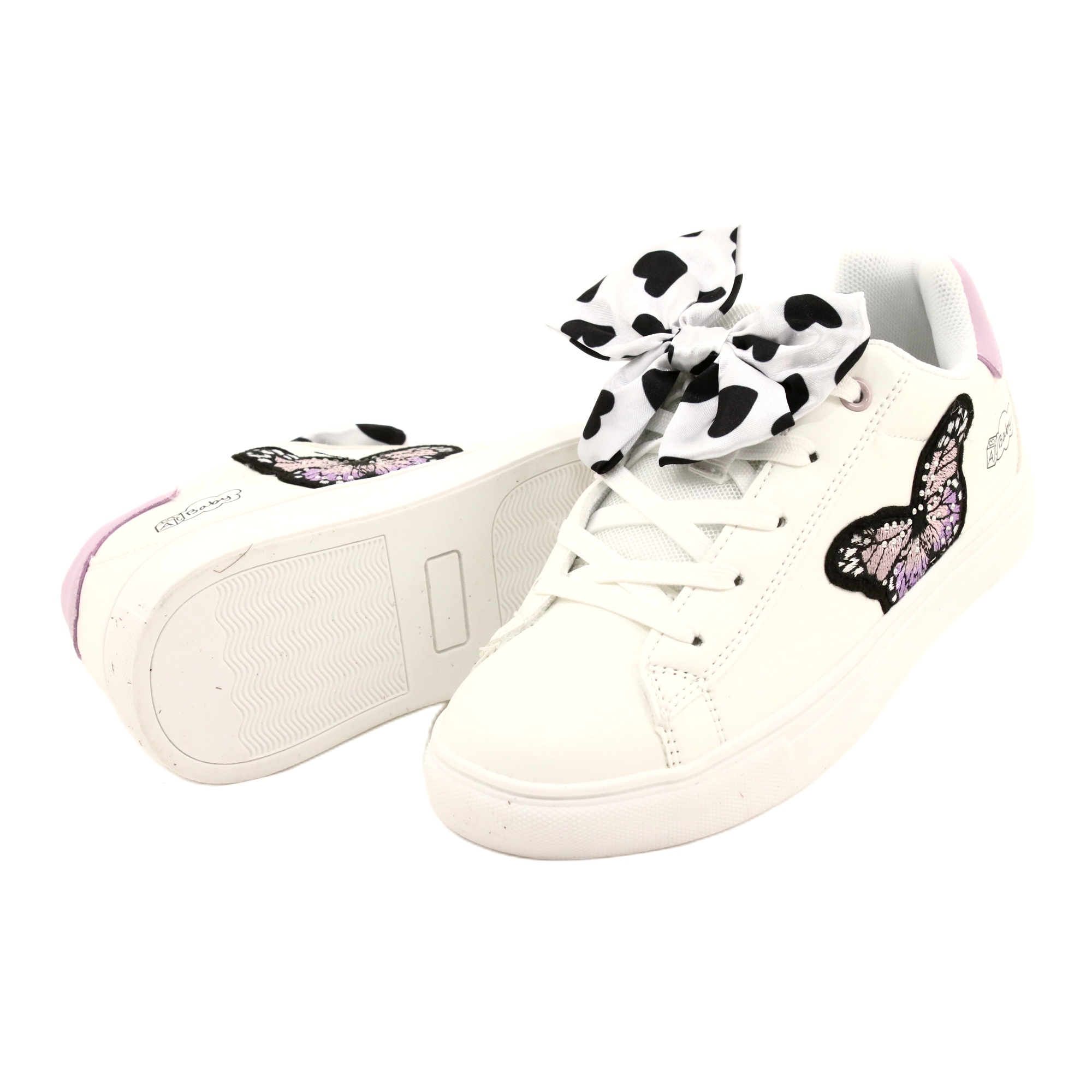Tênis esportivos brancos com um clube americano de arco e borboleta ES64 - sapatos leves e femininos perfeitos diariamente.