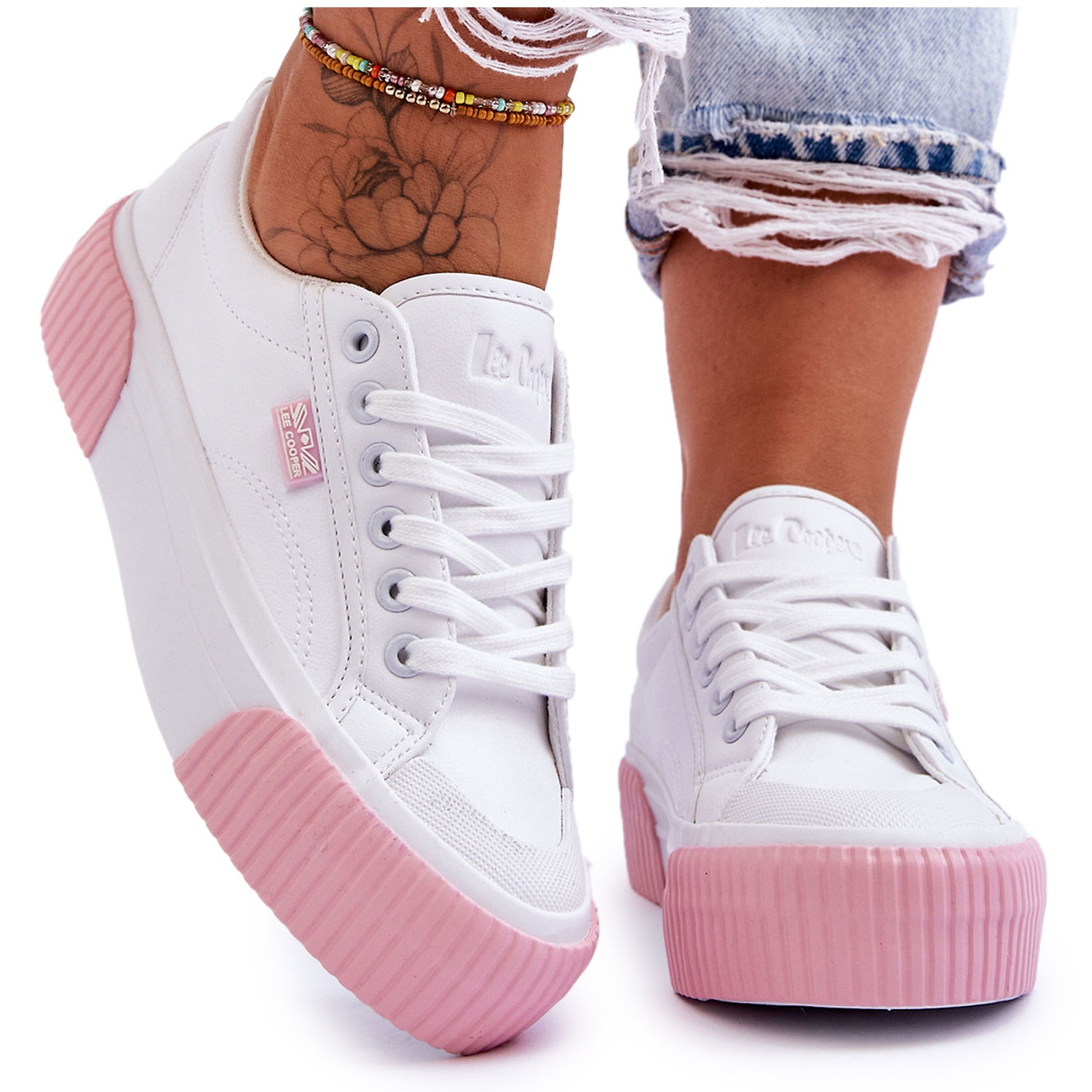 Apresentamos calçado desportivo exclusivo Lee Cooper LCW-23-31-1787L num clássico tom branco, que se adapta perfeitamente a qualquer estilo desportivo! Esses sapatos femininos baixos em uma plataforma enorme oferecem não apenas um visual moderno, mas também conforto e segurança no uso.