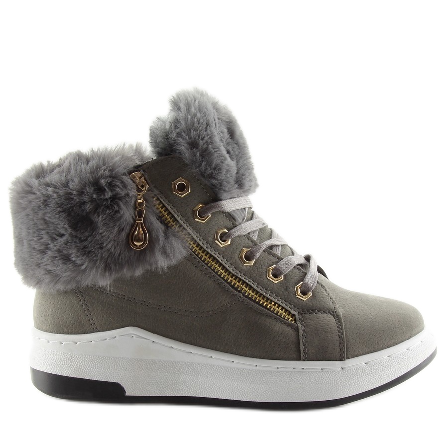 Os calçados esportivos isolados cinza 16-529 cinza são a escolha perfeita para mulheres que desejam aliar conforto a um visual moderno. Estes elegantes ténis distinguem-se pela pele original colocada ao longo do tornozelo, o que lhes confere um pouco de calor e elegância, quebrando o carácter desportivo do calçado. Uma vantagem adicional é o zíper dourado, que confere ao calçado um design único e moderno.