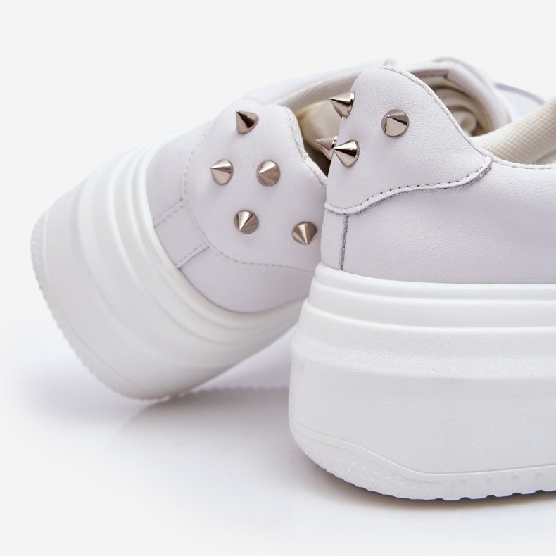 Tênis de Goe elegantes e confortáveis que combinam um personagem esportivo com o estilo urbano. Feito de tecido de malha natural e respirável, situado em uma enorme plataforma de 5 cm - garante estabilidade e aparência elegante todos os dias. O salto rígido foi decorado com pregos sutis, o que adiciona um sotaque original aos sapatos. Lace -up, com um dedo redondo e parte superior baixa (6,5 cm) - ideal para conjuntos casuais.