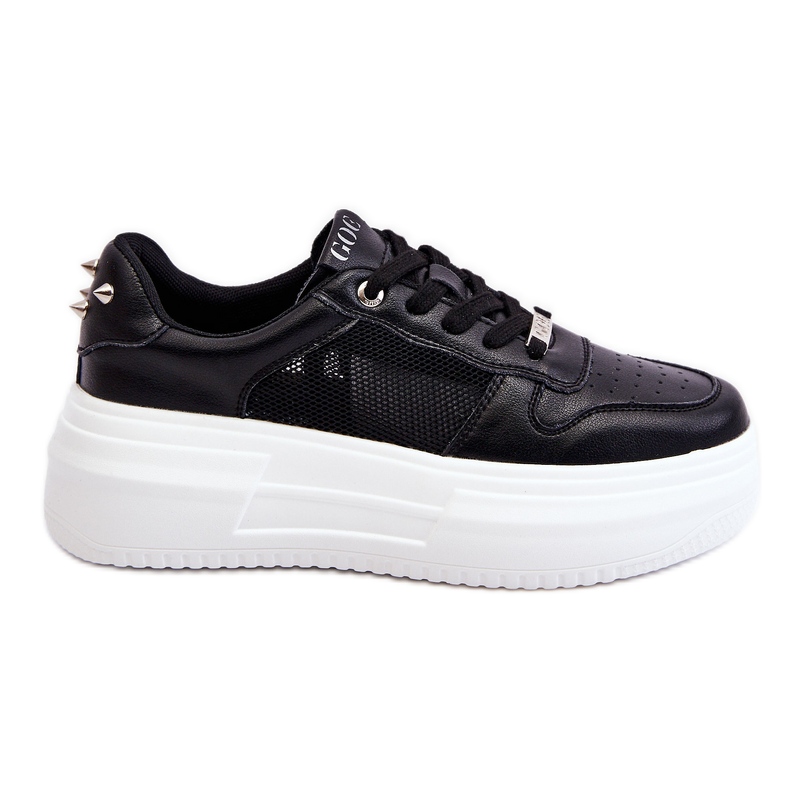 O clássico feminino Goe LL2N4061 Sports Shoes in Black é uma combinação de conveniência, durabilidade e estilo urbano da moda. A parte superior feita de couro natural foi suplementada com uma malha respirável, o que garante uma melhor ventilação do pé, e o salto rígido com pregos decorativos acrescenta caráter e estabilidade. Os sapatos estão incorporados em uma plataforma enorme com uma altura de 5 cm, o que opticamente diminui a figura, sem desistir do conforto do uso.