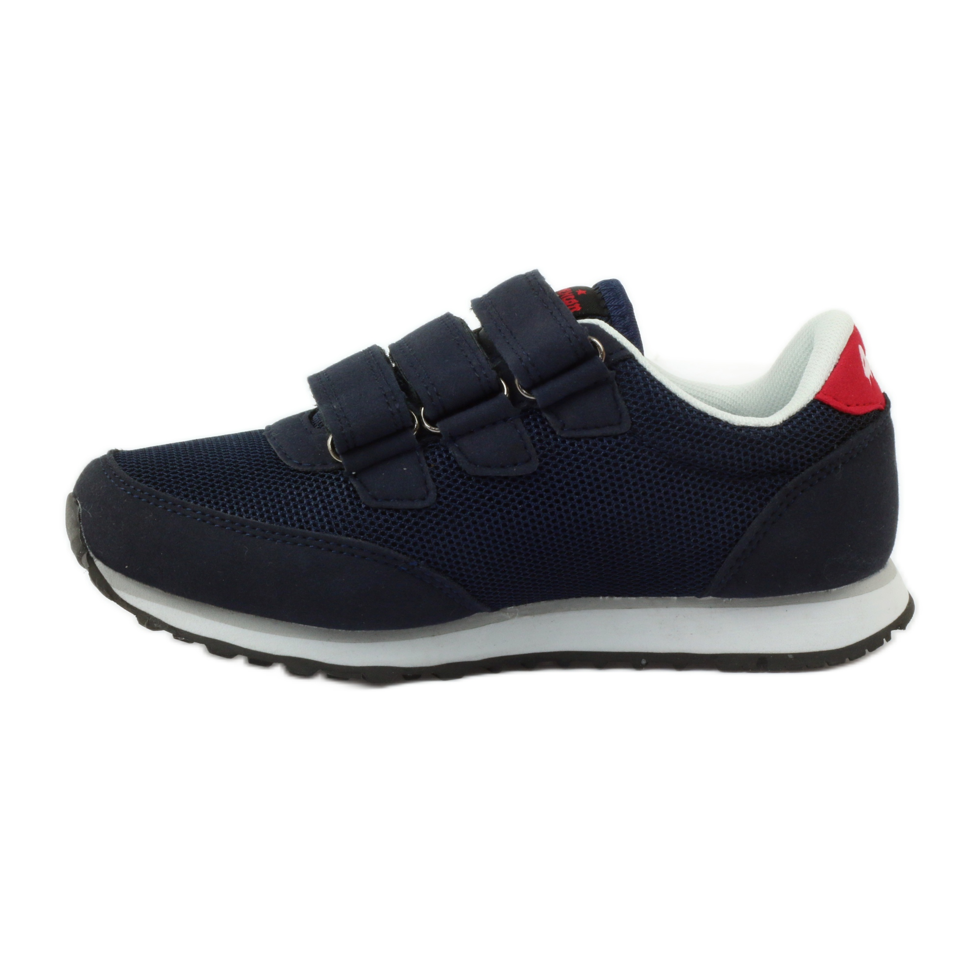 Os tênis apresentam um design atraente em azul marinho e vermelho, que certamente atrairá a atenção dos jovens usuários. Além da estética, este modelo também oferece soluções práticas - o fecho de velcro torna fácil e rápido calçar e tirar o calçado, o que é especialmente importante para as crianças.