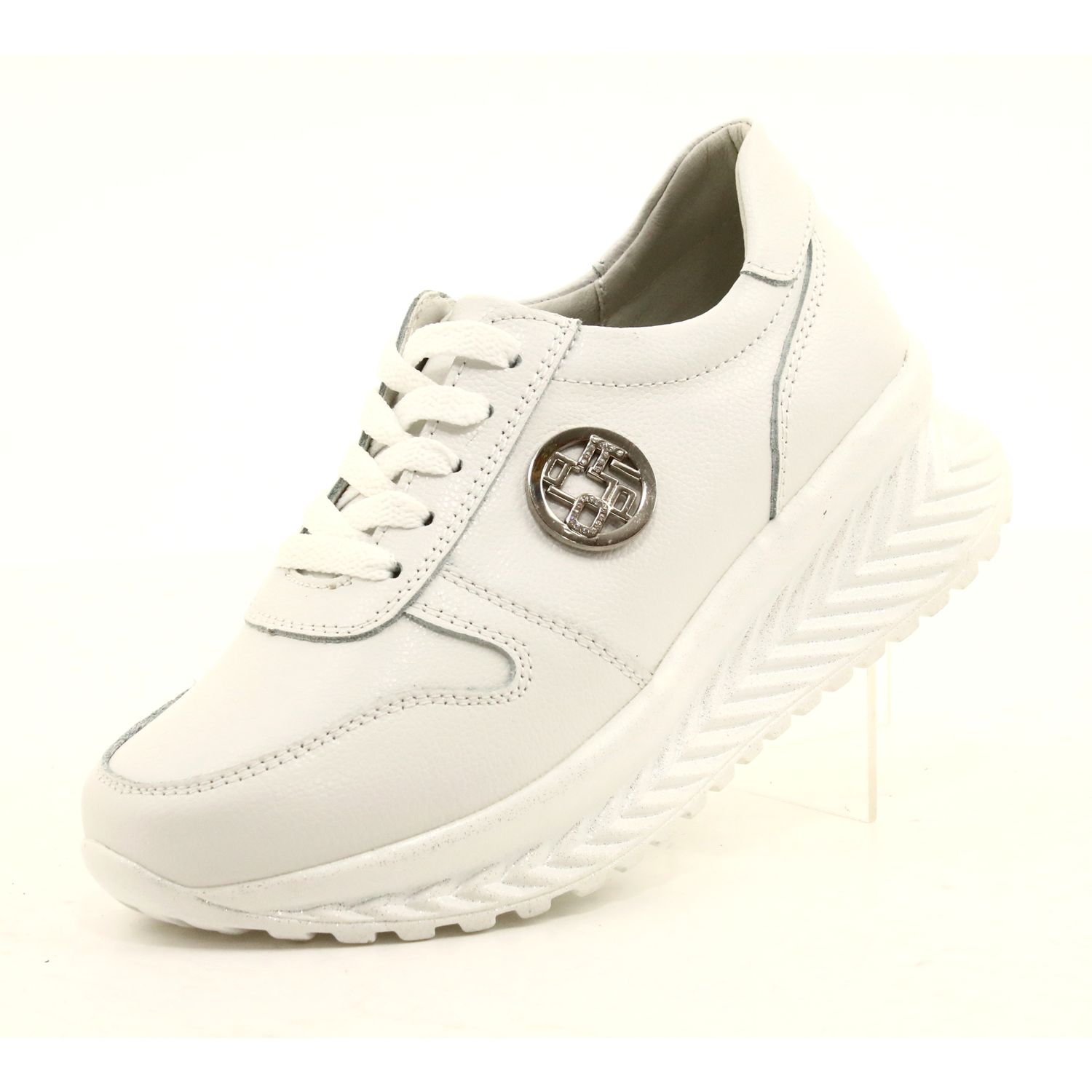 Os calçados esportivos femininos com atacadores Filippo DP3547/22 WH em branco e prata são a escolha perfeita para mulheres que desejam combinar conforto com elegância. Estes elegantes tênis com plataforma de 5 cm de altura realçam efetivamente qualquer estilo, adicionando um pouco de elegância a ele. Confeccionados em couro natural, garantem ajuste perfeito e conforto de uso o dia todo.