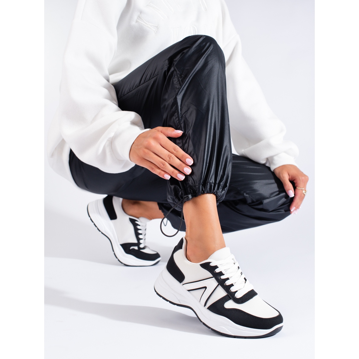 O fecho com cadarço permite um ajuste perfeito ao pé, o que aumenta o conforto de uso. O forro interno é confeccionado em tecido, o que proporciona maciez e conforto adicionais durante longos períodos de uso. Os sapatos Shelovet estão disponíveis em cores da moda - uma combinação de branco e preto, o que os torna perfeitos para muitos estilos casuais e esportivos.