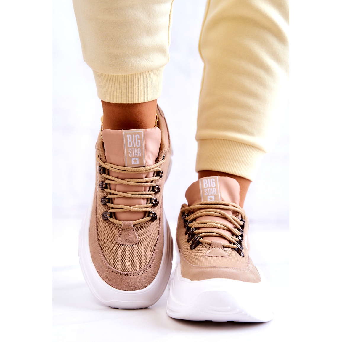 Apresentamos os exclusivos tênis esportivos femininos Big Star JJ274A222 em uma elegante cor bege. Estes sapatos elegantes da marca polaca BIG STAR são uma combinação perfeita de design moderno e funcionalidade.