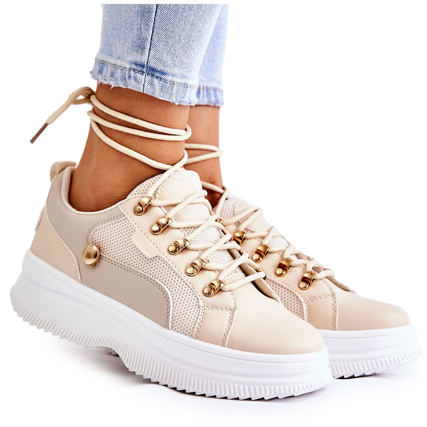 Detalhes: PG1 Tênis esportivo feminino de couro bege Salmira