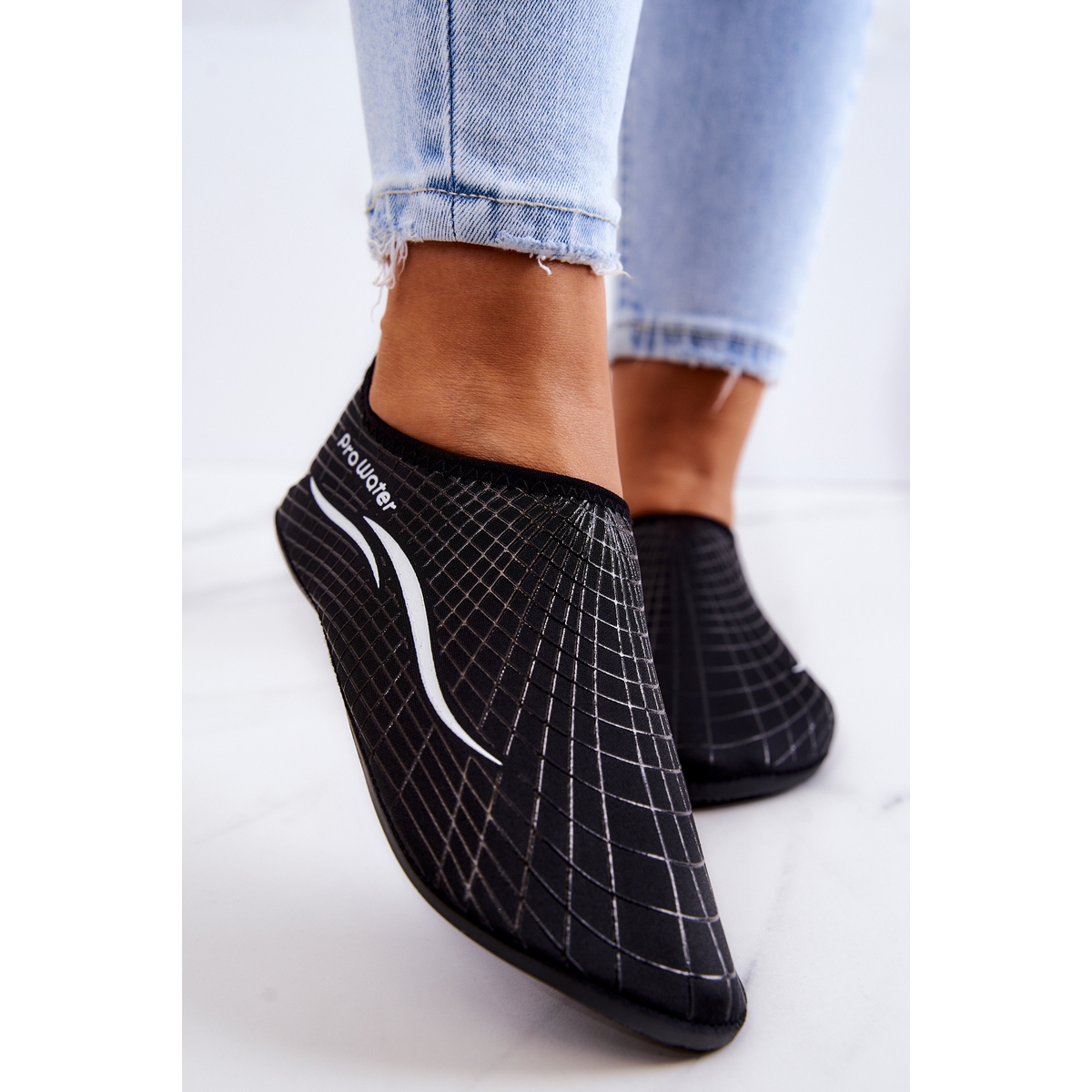 **Calçados esportivos aquáticos femininos ProWater 22-4-013L pretos** são a escolha perfeita para mulheres ativas que adoram passar o tempo em aventuras aquáticas. Graças a uma sola especial, flexível e antiderrapante, estes sapatos proporcionam uma excelente protecção dos pés contra pedras pontiagudas, bem como uma excelente aderência na prática de diversos desportos náuticos, como o surf ou o paddleboard.