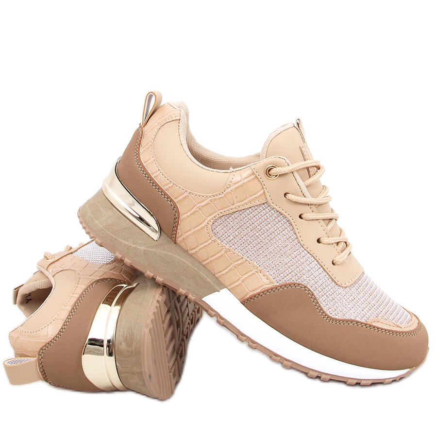 Adicione um toque de estilo e conforto ao seu guarda-roupa com os calçados esportivos femininos Teona na cor bege cáqui. Este modelo único com cunha oculta de 5 cm de altura é uma combinação perfeita entre modernidade e clássico, perfeito para o uso diário. Inserções metálicas exclusivas e detalhes em pele de cobra farão com que esses sapatos atraiam a atenção e façam você se destacar na multidão.