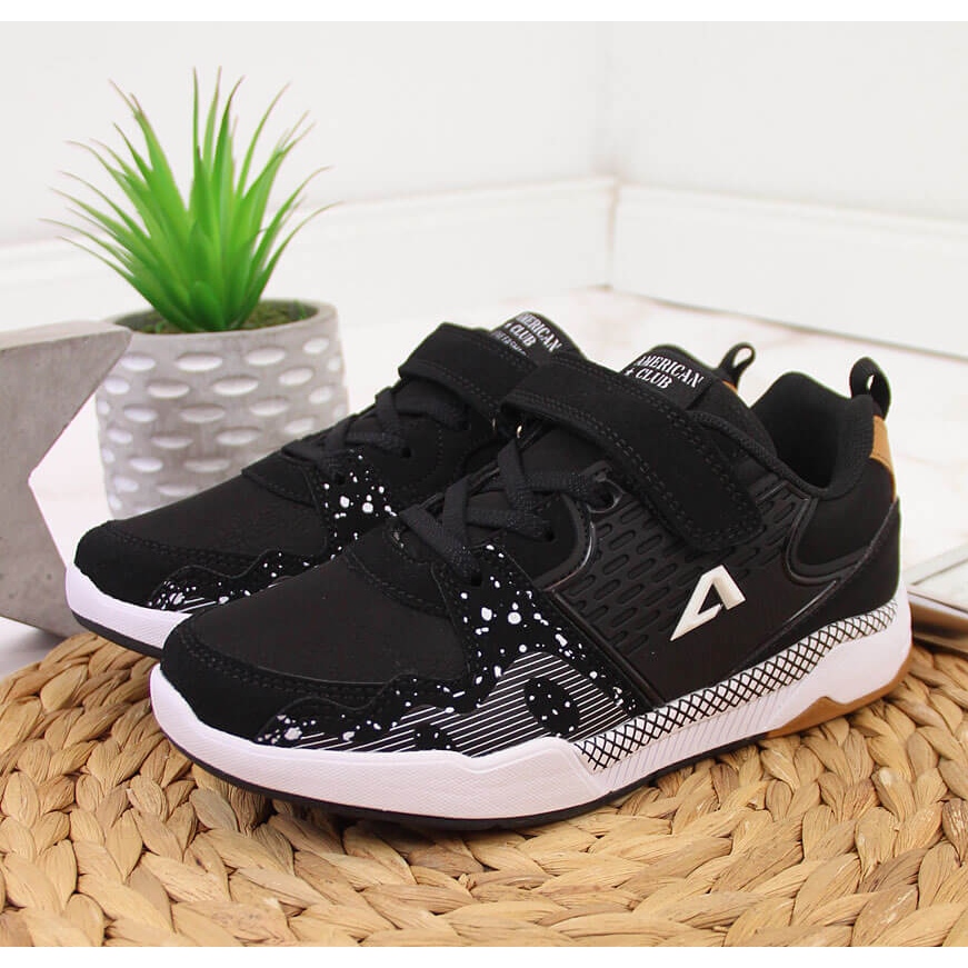 American Club Tênis esportivo infantil Black American Club com velcro preto