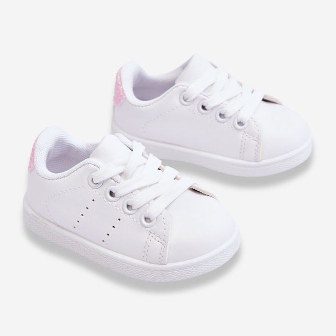 **Sapatos Esportivos Infantis FR1 Branco e Rosa Brilhante**