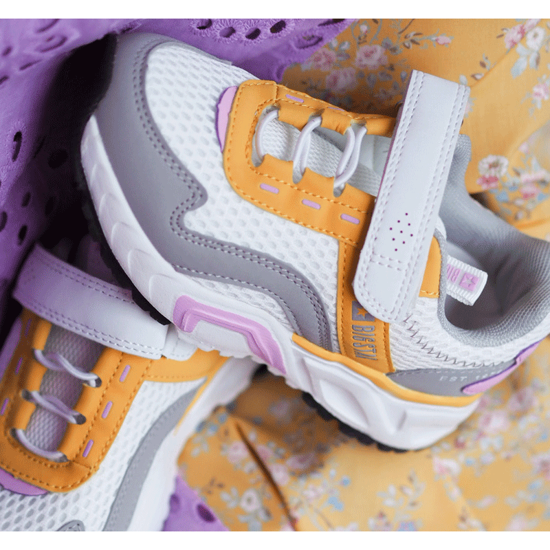 Big Star Tênis esportivo infantil com velcro Big Star JJ374257 branco e amarelo multicolorido