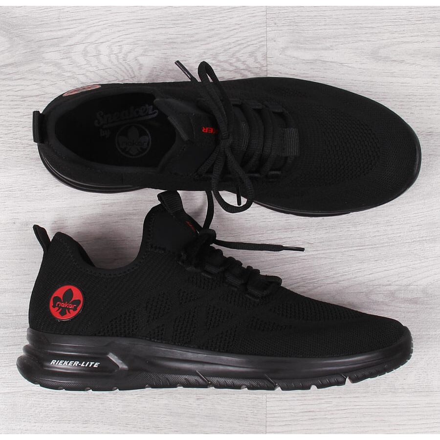 Apresentamos o calçado desportivo masculino em malha preta Rieker B7376-00 - a escolha ideal para homens activos que valorizam conforto e design moderno. Estes calçados exclusivos vêm de um renomado fabricante alemão, a marca Rieker, que se destaca pela alta qualidade de seus produtos.