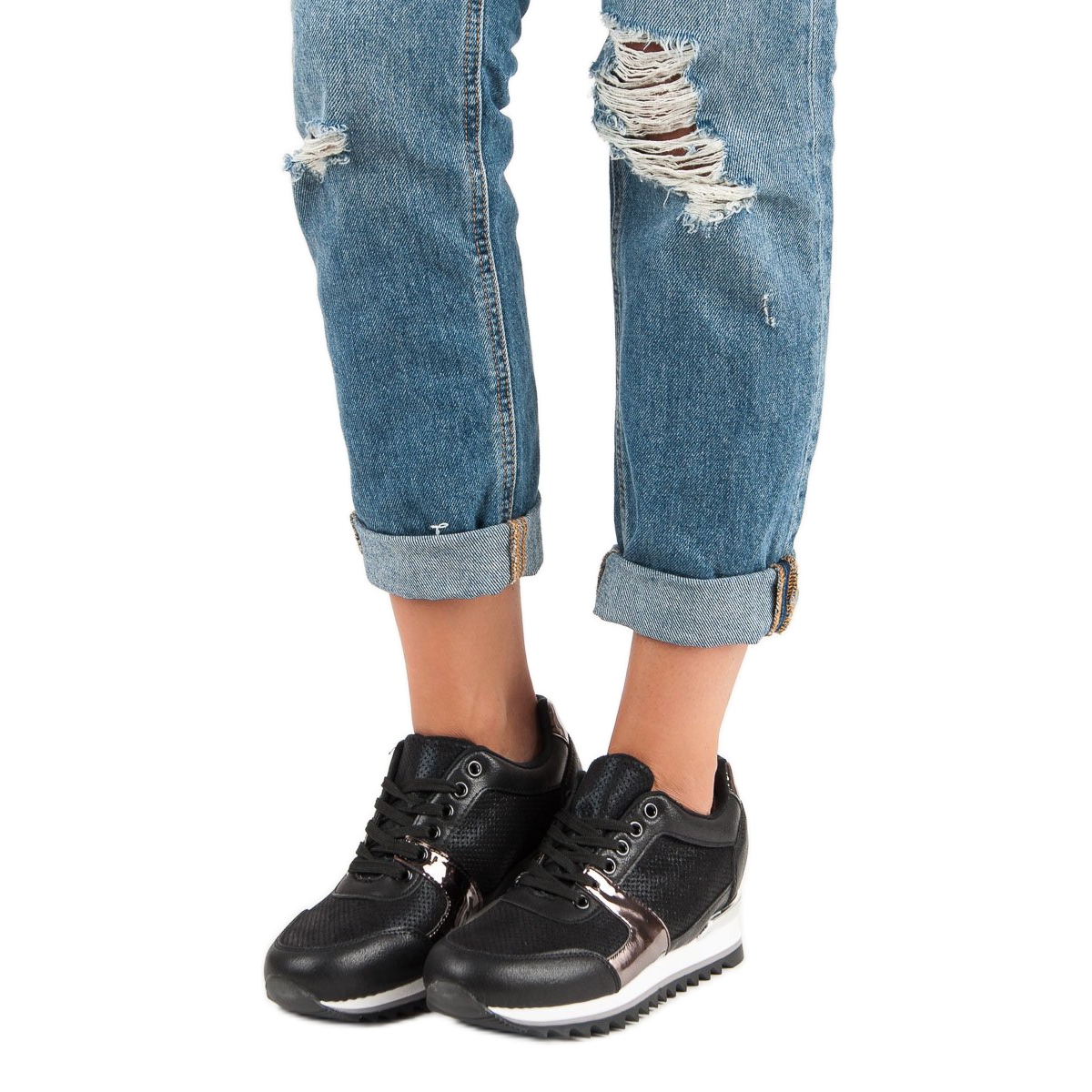 Estes calçados esportivos leves são perfeitos não apenas para o uso diário, mas também como um elemento elegante do seu guarda-roupa esportivo. As inserções metálicas conferem-lhes um visual único, tornando-os um destaque interessante em qualquer estilo. Quer vá passear, trabalhar ou ir à universidade - estes sapatos pretos serão um complemento perfeito para o seu guarda-roupa. Escolha conforto e estilo com a coleção BUTYMODNE!