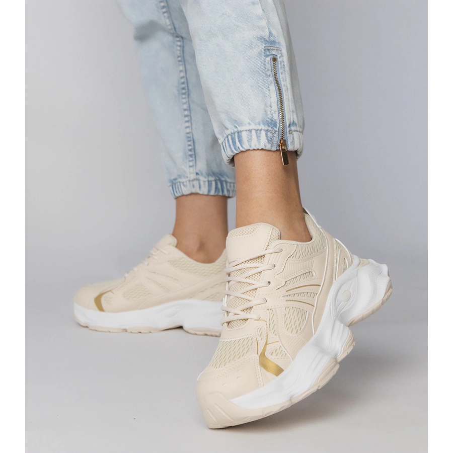 Apresentamos tênis esportivos bege, que são um complemento perfeito para cada estilização diária. O modelo PC2811 combina elegância e design moderno, o que a torna uma ótima opção para mulheres ativas. Graças à sola enorme com uma altura de 5 cm, esses tênis não apenas atraem seus olhos, mas também oferecem excelente amortecimento ao caminhar.