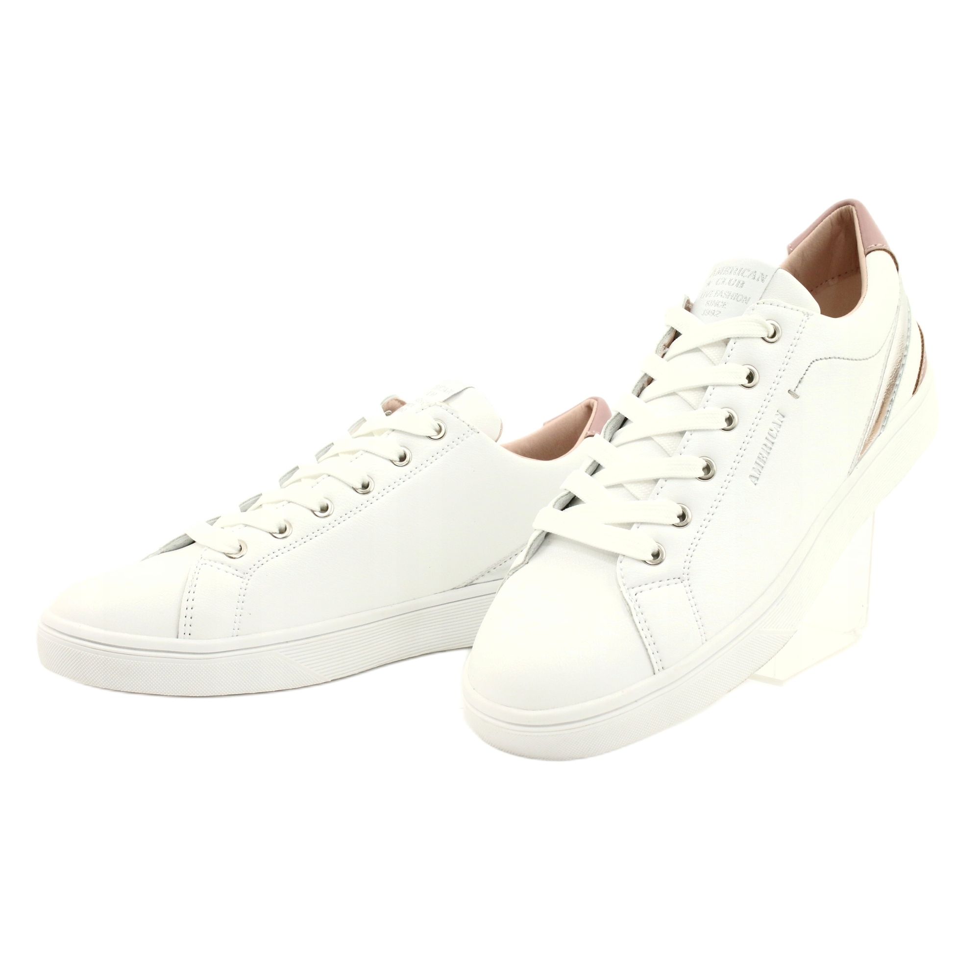 Os tênis clássicos e elegantes do American Club RH12 são uma proposta para cada garota que valoriza o conforto e o design contemporâneo. Feito de couro ecológico com elegantes inserções de prata e pó, elas parecem frescas e universalmente - ideais para estilizações cotidianas.