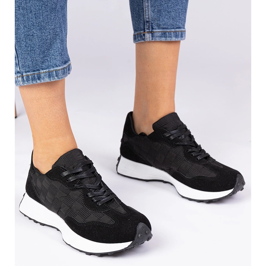 Feito de tecido de alta qualidade, os tênis N-203 são distinguidos por um nariz redondo, o que garante o conforto de uso e uma sólida plataforma de 3,5 cm de altura, garantindo estabilidade a cada etapa. As cores pretas clássicas tornam esses sapatos extremamente universais - eles se misturam perfeitamente com estilizações casuais e esportivas.