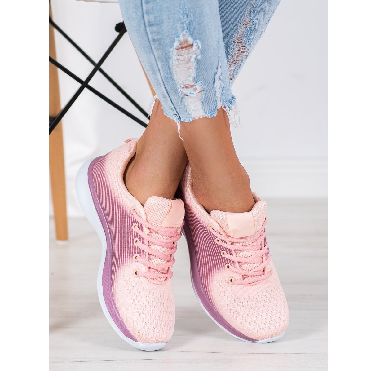 A parte superior do tênis com bico arredondado e salto reforçado e reforçado proporciona não só suporte, mas também um visual moderno. Um tom mais claro de rosa na frente e no calcanhar acrescenta leveza e sutileza, enquanto os lados mais escuros introduzem contraste, enfatizando o design exclusivo.