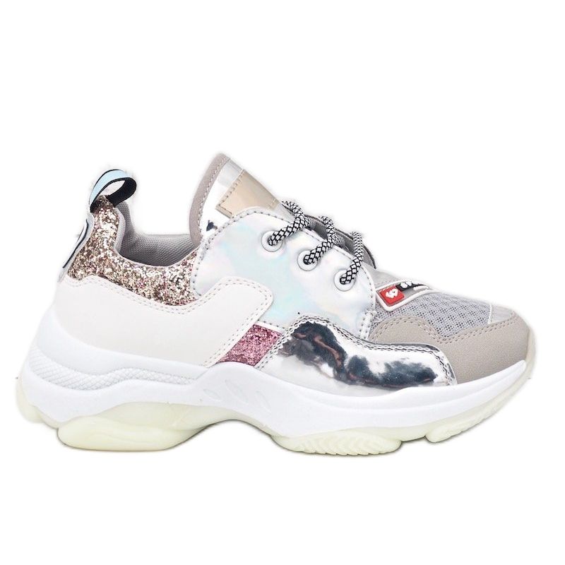 Detalhes: Tênis esportivos prateados elegantes B0-206 cinza multicolorido