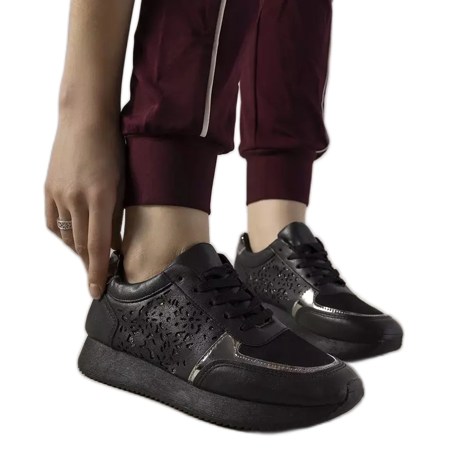 Detalhes: Tênis esportivos pretos com um padrão de Festival de bordados