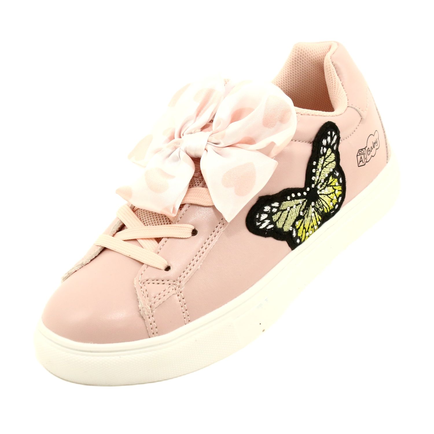 American Club ES64 - tênis rosa das meninas com um arco e uma borboleta