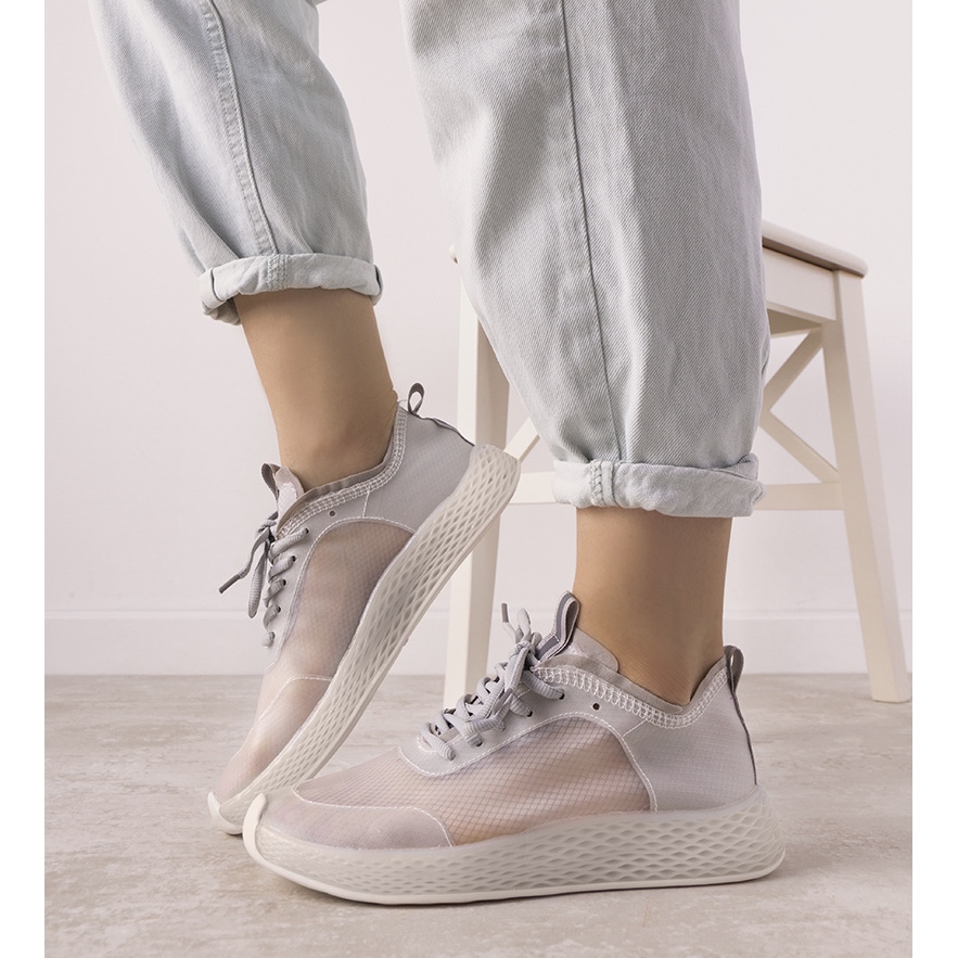 Detalhes: Tênis esportivos transparentes cinza Alicante