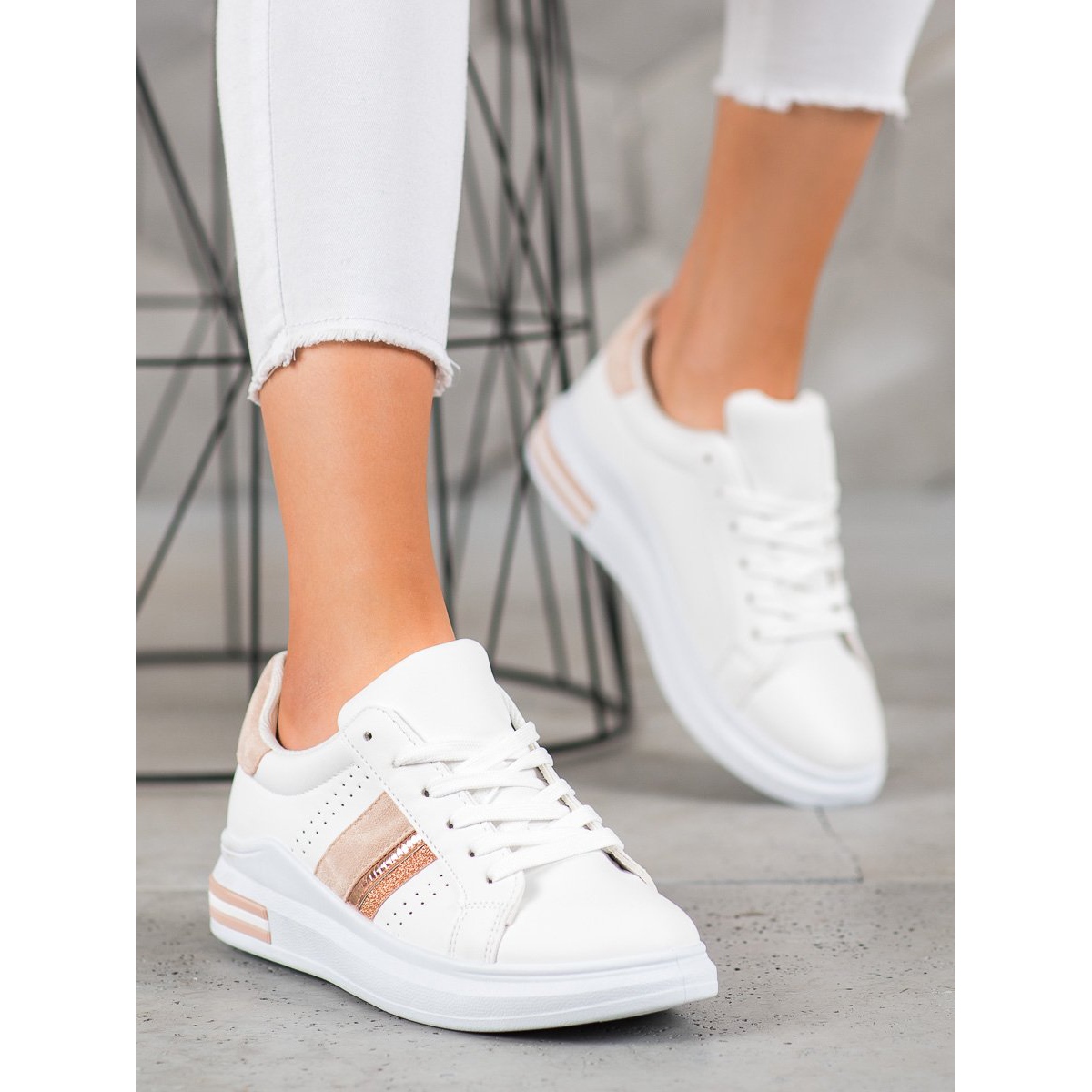 Descubra conforto e estilo com os tênis femininos SHELOVET brancos, a escolha perfeita para a primavera e o verão. Esses sapatos da moda combinam um corte esportivo com detalhes femininos, graças às inserções rosa que chamam a atenção.