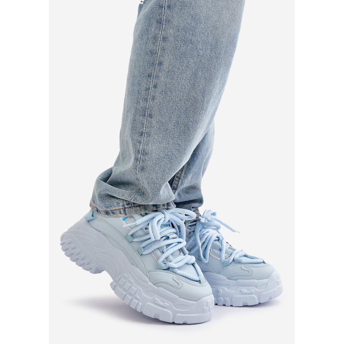 Os tênis femininos na enorme sola azul Nevela é a combinação perfeita de design e conforto na moda. Esses sapatos elegantes incorporados em uma sola de plataforma sólida de 6 cm são distinguidos não apenas na aparência, mas também com funcionalidade. A inserção de espuma removível garante conforto o dia todo, o que os torna uma escolha perfeita para saídas diárias e estilizações mais casuais.