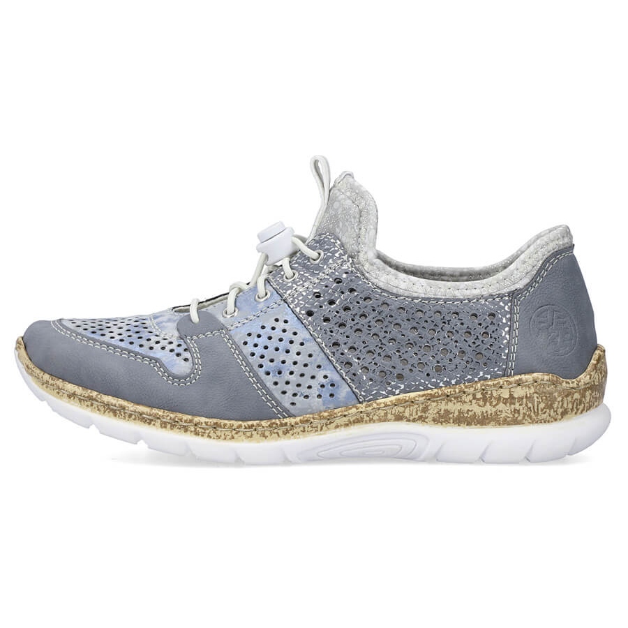 Detalhes: Tênis feminino azul vazado Rieker N4255-12