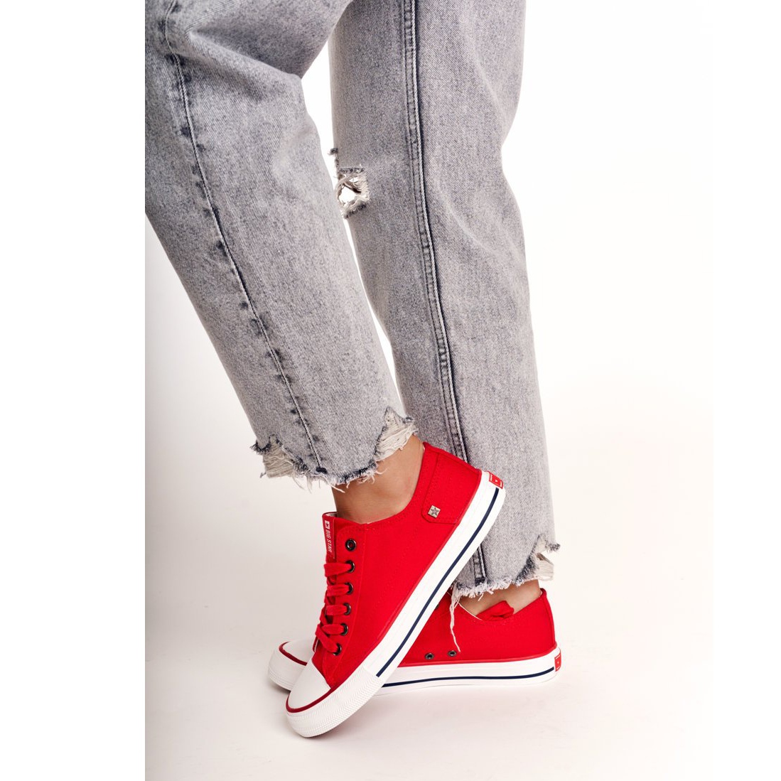Tênis clássicos e baixos em uma cor vermelha intensa e intensa - um modelo atemporal no estilo da escola antiga que se refere aos projetos icônicos dos anos 70. Confortável, renda -up e muito universal - ideal para o trabalho e para passeios de fim de semana ou viagens para fora da cidade.